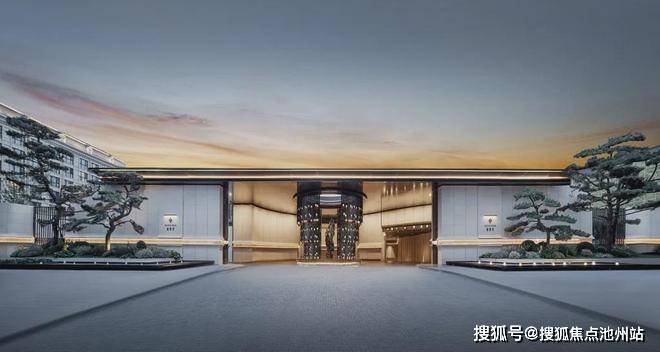 约52.8米的恢弘门庭,焕新城市界面,昭示礼序归家。大门入口以千册崖为形意的原创艺术雕塑,尽显尊贵的归家仪式感。酒店式环岛落客,仪式感和空间感有机融合。大门两侧,有四棵50年和70年树龄的迎客松;大门气派,且仪式感满满;