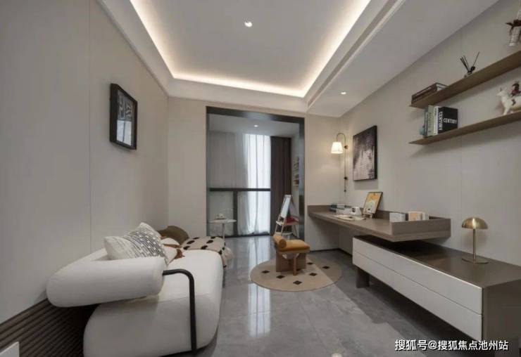 书房与客厅共享双联大阳台,跑道式阳台,空间百变灵动,闲时休闲健身、养花弄草,一处酝酿诗意,一处盛放生活。