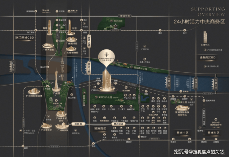 项目西面与广州塔并肩而立,距离世界级地标商圈广州塔广场仅约1.5公里,享受同步国际的顶奢资源。北望珠江新城CBD璀璨繁华,与亿级江景豪宅侨鑫汇悦台、广粤天地共享同一江境。楼下则是正在建设中的琶洲π艺术馆,将打造成琶洲一流商务文体核心地,营造艺术与生活密不可分的美学体验。