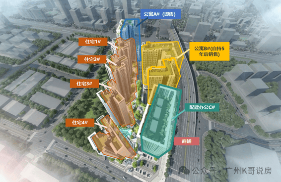 业态分布:1栋写字楼+2栋商办公寓+4栋住宅+建面约2000㎡商业