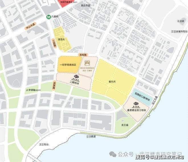 区位来看,这两个项目处于武汉内环,长江与汉江交汇处。西边是汉口起源点龙王庙,东边是华中第一步行街江汉路,与南岸嘴、长江大桥黄鹤楼隔江相望,其地段价值毋庸置疑。