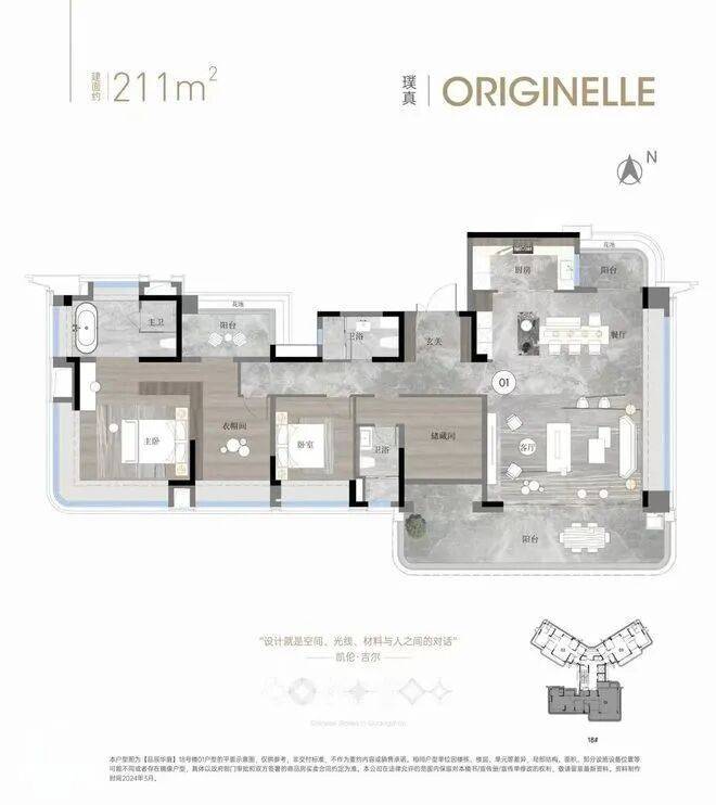 230平户型拥有私家电梯厅、双主套、独立佣人房、南北对流、LDKB大方厅、主卧L型270°飘窗等,大大提升了整体的空间体验。