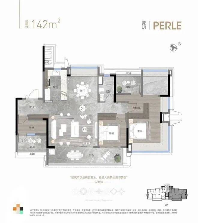 产品上,还在一期的基础上进行升级了,整体以13-24层的小高层为主,使用率100%-110%