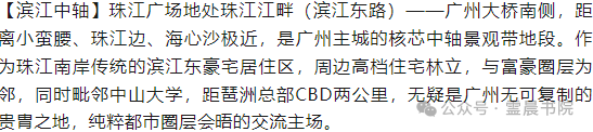 【核心价值点】【稀缺板块】海珠区滨江东板块是广州历史悠久的豪宅区之一,早已是不少富豪争抢之地。近年来,海珠区滨江东板块乃至核芯城区新增供应极少,一手新房源稀缺难求。经多年市场空缺,市区换房改善客群呼声高涨。珠江广场作为滨江东板块新入市一手住宅,必将引致全城热望。
