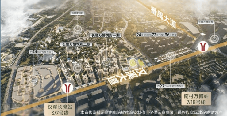 二期距离地铁3/7号线汉溪长隆站就更近了,下楼就是地铁口