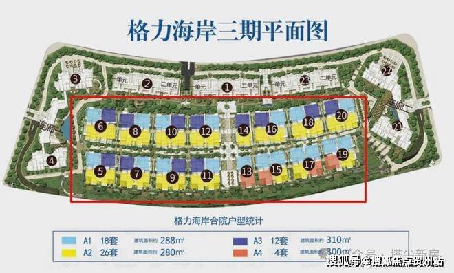 2、格力海岸别墅A4户型,东南向, 现房即买交楼。一共有6层,含赠送约660平方米左右,送地下车位;毛坯房交付,预留电梯井。