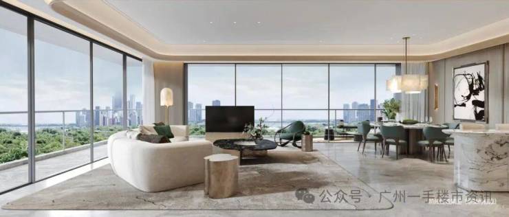 华樾项目在产品户型方面以非凡尺定义豪宅新高度,生活景观双阳台和中西双厨的设计,使得每一户248㎡和254㎡户型都是南北对流,四开间朝南的采光可望黄埔涌江景。项目最大面积330㎡户型则拥有五开间朝南设计,客厅拥有约19.2M超长“LDKB”江景景观和超大L型景观阳台,坐在客厅就能拥揽270°环江巨幕景观视野。