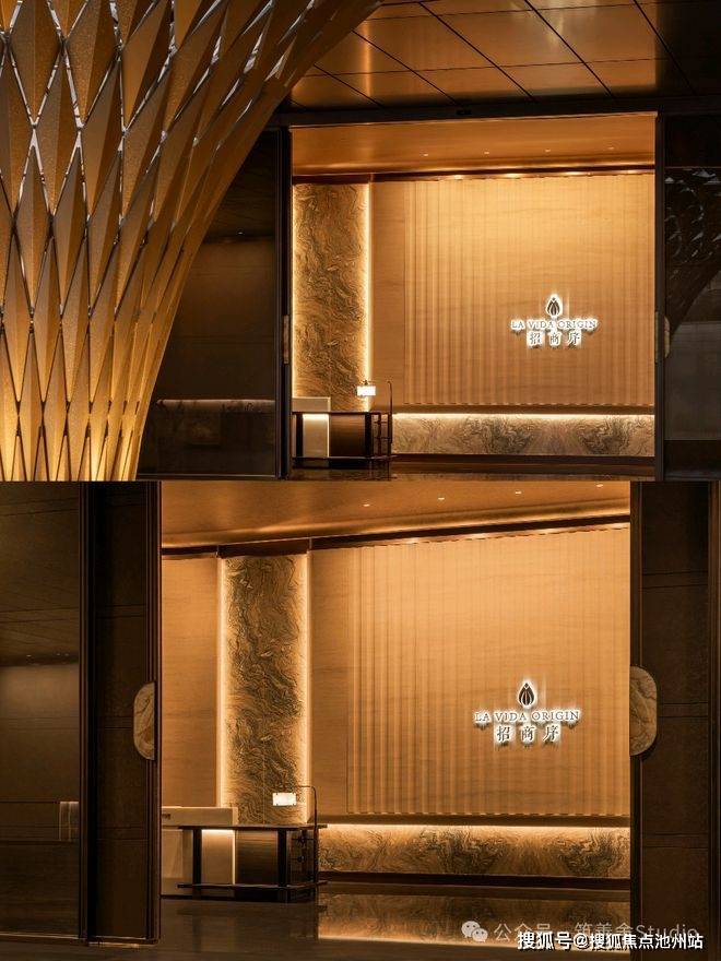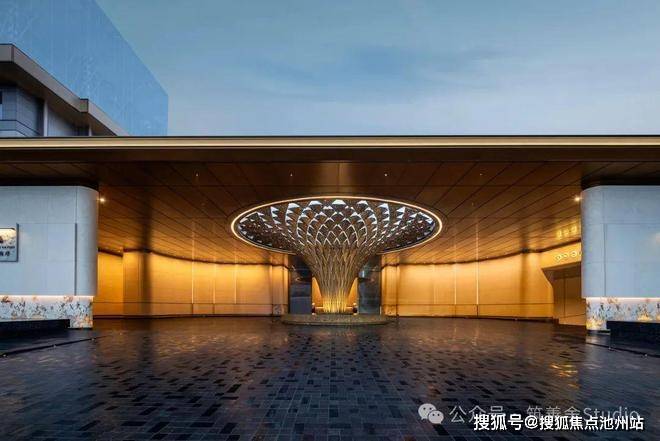 主入口设计借鉴酒店环岛落客风格,顶部巧妙开洞,艺术雕塑装置与之浑然一体,巧妙融合了天圆地方的传统文化理念。归家之路不仅彰显尊贵与庄重,更赋予了一种别具一格的仪式体验。