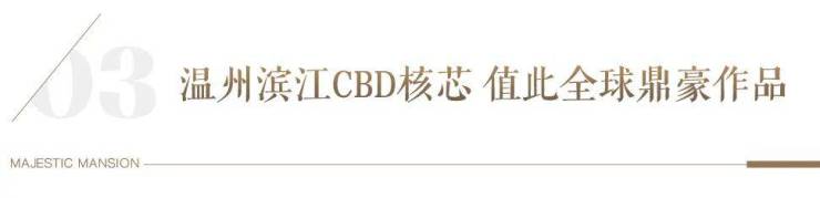 位居滨江CBD正芯,北接CBD绿轴,总占地面积超270亩,以超高窗墙比玻璃立面、超万方中心大花园等为基础,四大豪奢会所顶级集群,建筑面积约153-280㎡大宅敬呈温州大人物。