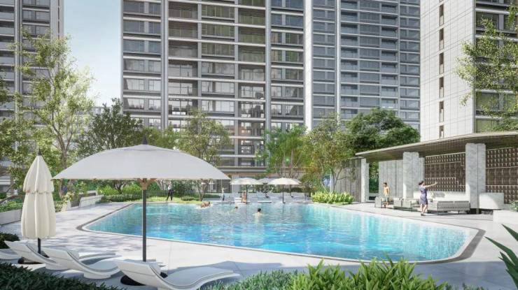 另一方水景则是约320㎡的异形泳池,它的特别之处在于在绿城经典无边泳池基础上,融入现代度假感异形设计,可实现儿童戏水和泳池功能。