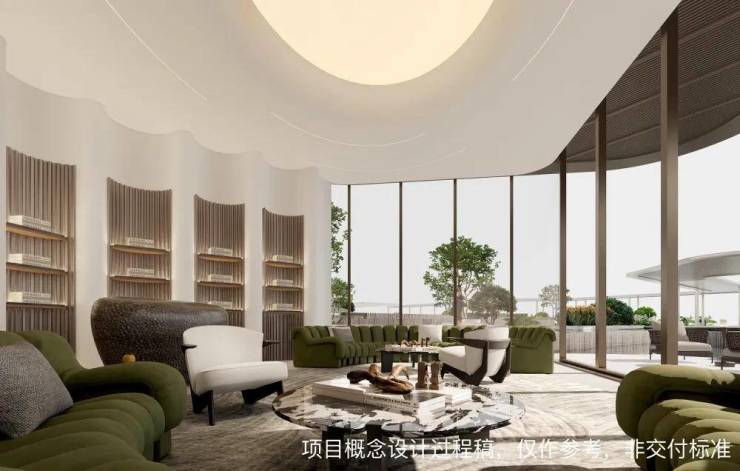 沿水境四周则融合现代人生活场景,打造集会客、办公、书吧、艺术、休憩五大功能于一体的中芯聚院。
