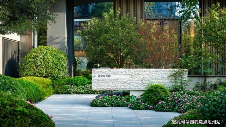 比如住宅入户大堂门前,利用茂盛的种植同样围合出一片专属前庭,也相当于归家的最后「一进」。