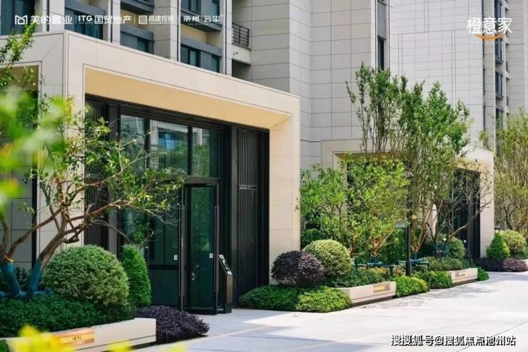 入户单元门采用真石漆搭配落地玻璃、黑色格栅设计,面部识别入户系统解放双手,兼顾美观性和实用性。