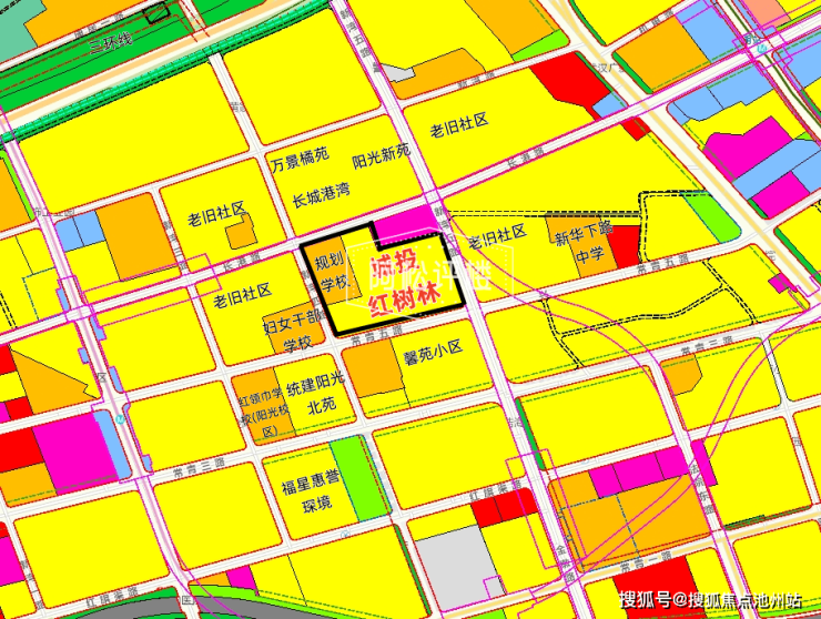 南侧为常青五路、规划教育用地、馨苑小区等;