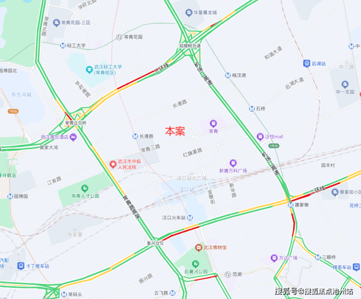 该项目位于江汉区常青五路与新湾五路交汇处,是市委党校原校址地块,在二环与三环之家,与三环线直线距离约500多米,与地铁2号线长港路站直线距离约500多米。