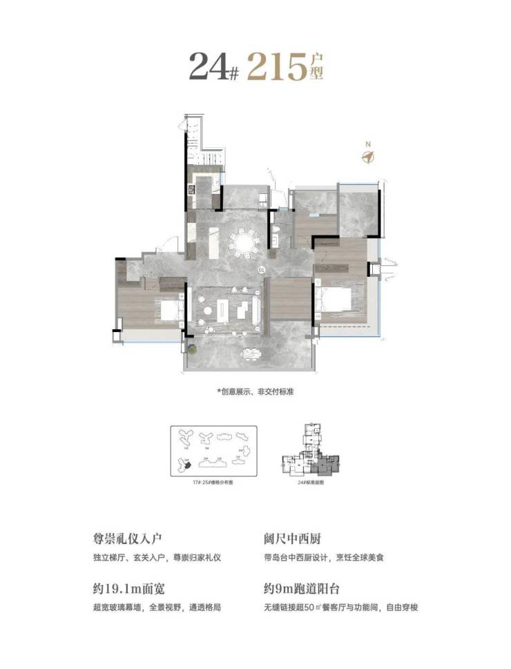 建筑面积约:980000㎡总规划:24栋,1780户总层高:15~66层绿化率:30.5%车位:2801个