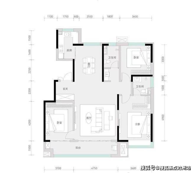 洋房产品为建面约147㎡三室,整体户型全明通透,采取独立玄关设计。南向三开间,约11.45米的面宽,为室内带来充沛的阳光。客厅和南向次卧外接约7.8米通阳台,无论日常晾晒、莳花弄草还是品茶休闲,都能轻松安放。