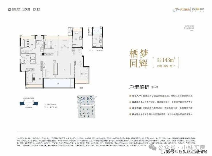 项目洋房建面约143㎡户型体验感更是直追180㎡大平层。无论是独立玄关,气派大横厅、阔绰四房……每一处设计都直击改善家庭对空间和功能的深度需求。