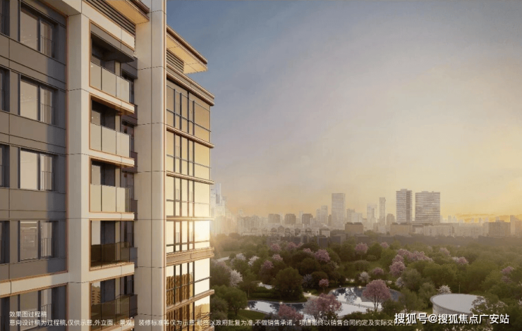 对称美学:遵循经典对称法则,融入世界级线性几何美学,在外立面每四层勾勒一道米白色铝板,规整中尽显秩序与高级感;