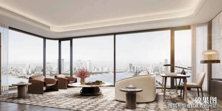 每户沿江面均配置全景落地LOW-E玻璃幕墙,约7.4—9米的看江横厅、双全景舱等设计,实现270度无界观江视野。