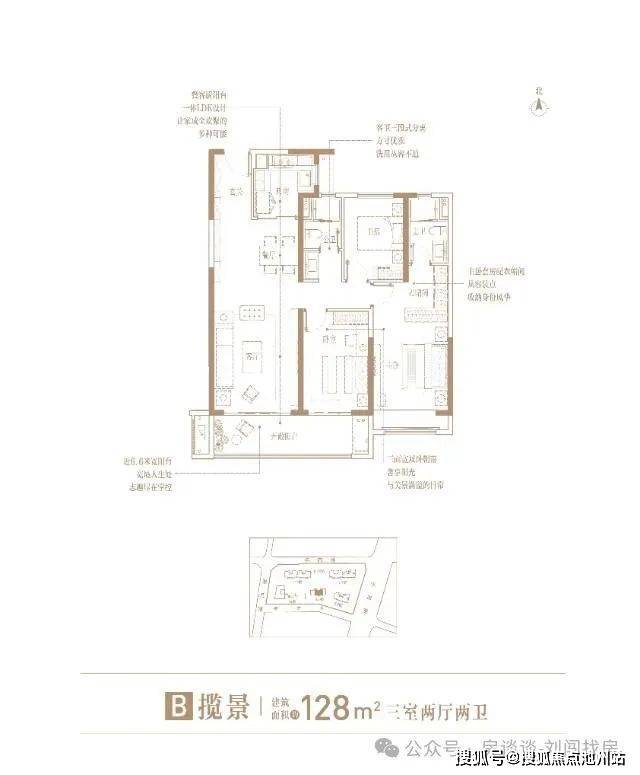 其中: 三房:109-128㎡,客厅朝南,部分户型配备宽幕阳台;
