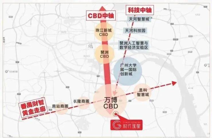 时代珑星位于广州番禺区万博CBD旁,紧挨着核心区!万博CBD在区位上位于番禺华南板块核心地段,北承珠江新城、琶洲会展中心、南接南沙自贸区,西连广州南站,占踞广州CBD中轴,广深港澳科技走廊与广深港高铁经济带双廊交汇的黄金C位,又属广州南拓轴与珠三角东西岸融合带核心,未来CBD价值不言而喻,万博板块的时代珑星,距离万博3公里多。