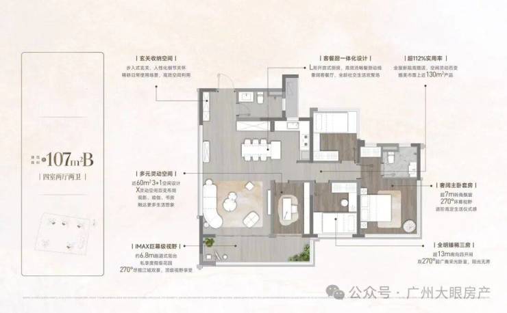 主推95、107、128、142㎡的户型,新规产品,据说使用率超过130%