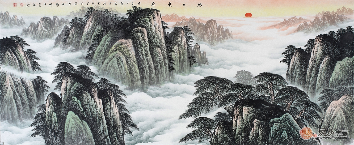 黄山之美始于松 李林宏迎客松风水画《旭日东升》(作品出自:【易从网】)