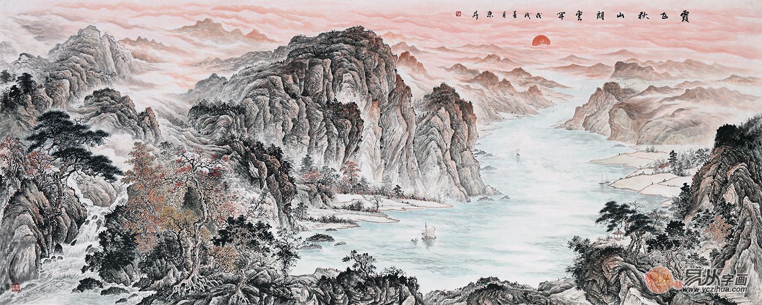 收藏必升值 赵洪霞八尺横幅国画《霞飞秋山朗云开》(作品出自:【易从网】)