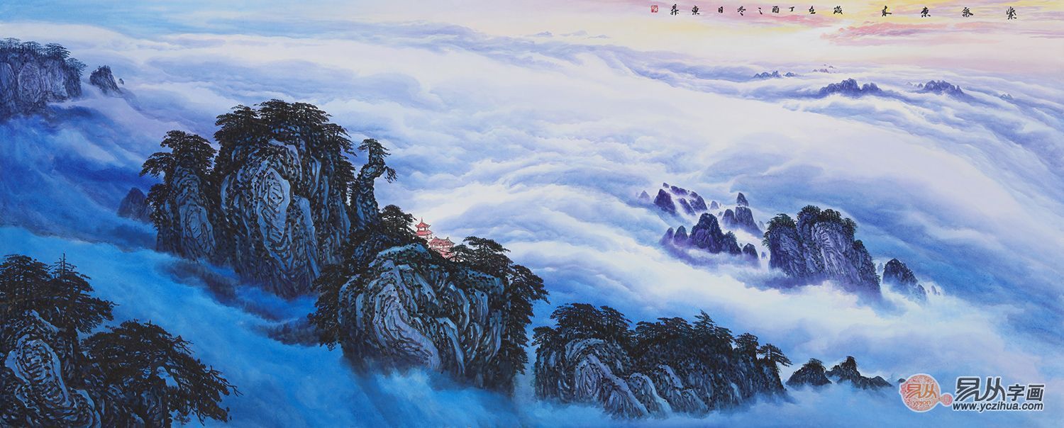 黄山云海图 中美协画家赵洪霞较新力作《紫气东来》(作品出自:【易从网】)