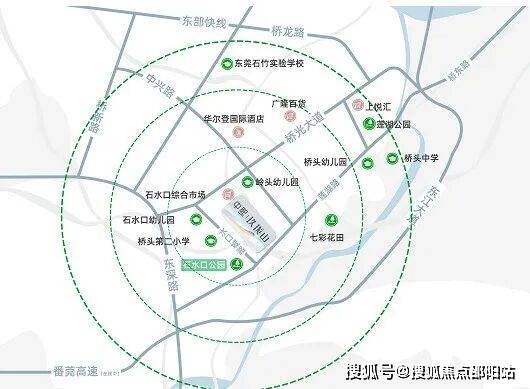◎三轨道:桥头坐拥R3、R17、惠州5号线延长线(规划中),三轨交融,串联东莞三大核心发展极,纵横莞惠两地,其中项目距离R3线大东路(规划)仅3公里。