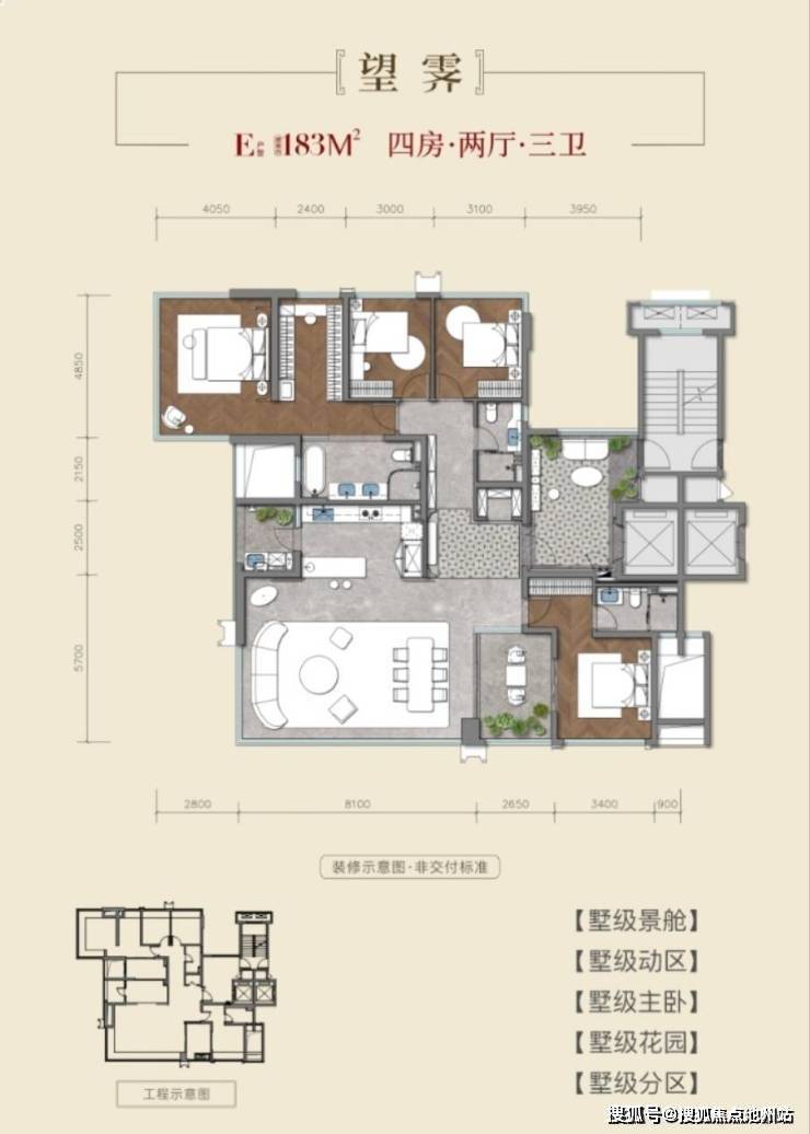 旗舰配置:独立家政间、双主卧套房,精装嵌入地暖、新风系统,实得面积超200㎡。
