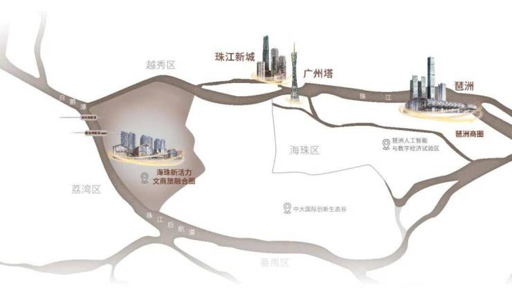 交通网络:周边路网发达,无缝接驳城市主干道与高速路,轻松通达全城;毗邻地铁X号线(可根据实际情况补充)站点,轨道交通便捷;同时依托珠江黄金水道,具备稀缺的滨水交通视角。
