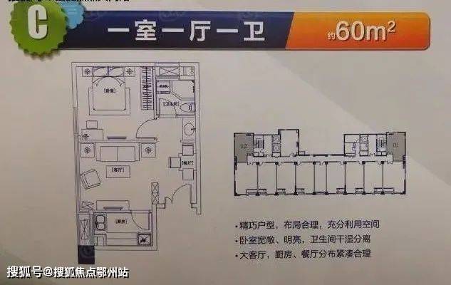 户型一:60㎡打造1房1厅1卫