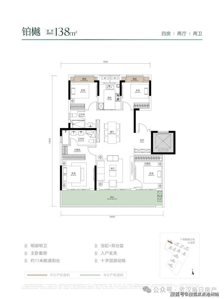 建面约138平洋房,得房率约95%,实得面积媲美市面上160平大平层。比同区域143平户型实得面积直接可以多出主卧套房面积。
