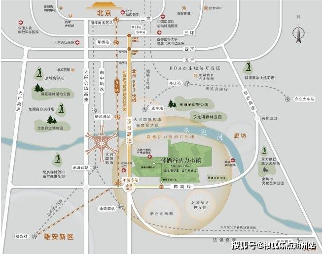 林栖谷项目与北京大兴仅一河之隔,紧邻北京大兴国际机场,南接雄安,东接天津 ,地理位置优越。项目规划总面积为2800亩,其中建设用地约 35.6 万平方米,总建筑面积 57.5 万平方米,1000亩银杏林,26亩生态有机农庄,13000㎡森林悦心湖,总体容积率为0.72,绿化率超过50%,6000+个/cm³负氧离子浓度。2016年由河北童舜集团全资开发,致力于打造国际康养示范基地的综合森林活力小镇.