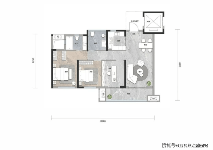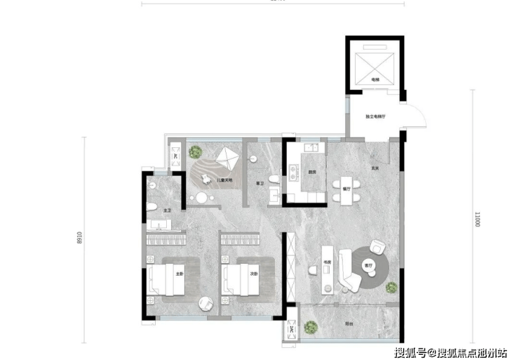 独立前室:带有独立前室,可打造为专属的收纳空间,放置鞋柜、雨具等物品。从电梯出来就进入相对独立的空间,增强了归家的仪式感与私密性,同时一定程度上扩大了使用面积。