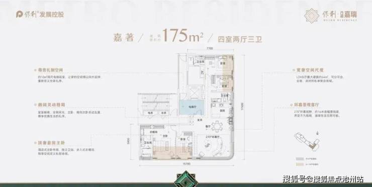 保利·沙湖嘉瑞项目共包含3个户型,分别是166、175、139平,具体分布如下: