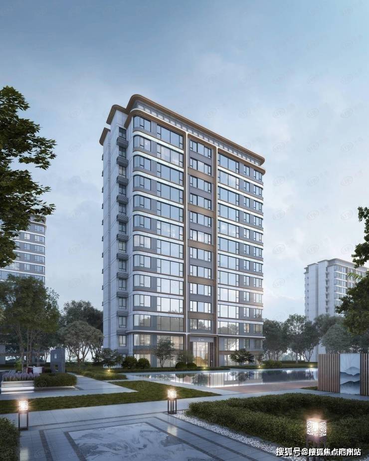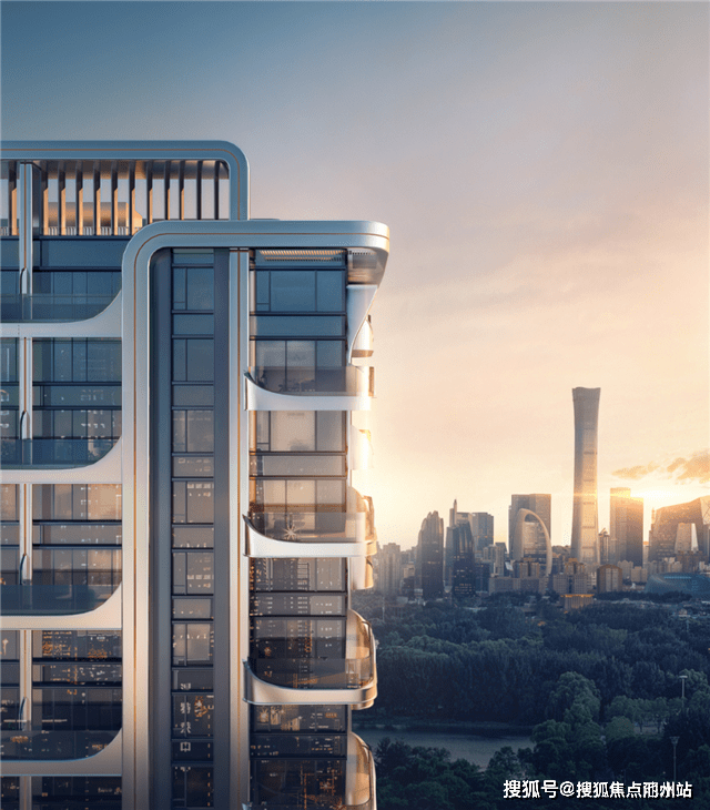 在外立面上,映溪臺集齐了外立面的流行元素,低饱和的香槟金,加上玻璃幕墙,弧线转角,这是大平层、叠拼等高端住宅外立面常客。再加上独特的重檐屋顶、三段式设计和高窗地比,让整个外观更具艺术美感,且更加干净通透。