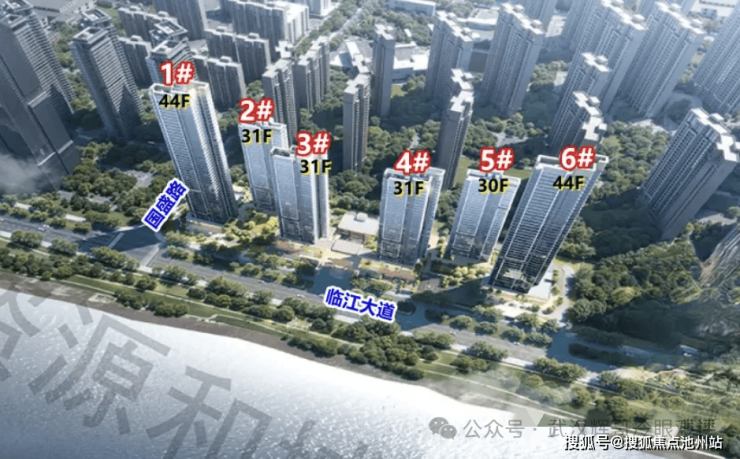 六栋楼都是西北向观江,1、3、4、6号楼一线观江,完全无遮挡。2、5号楼往后退了一点,左右的视野略有遮挡。