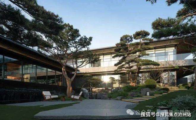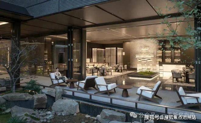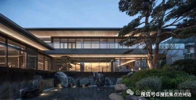再往里走,所见即是招商天青府高大上的社区会所。传统坡屋顶与现代中空超白玻璃结合,双层叠水泉鸣瀑响,舒缓清幽,过滤喧嚣。