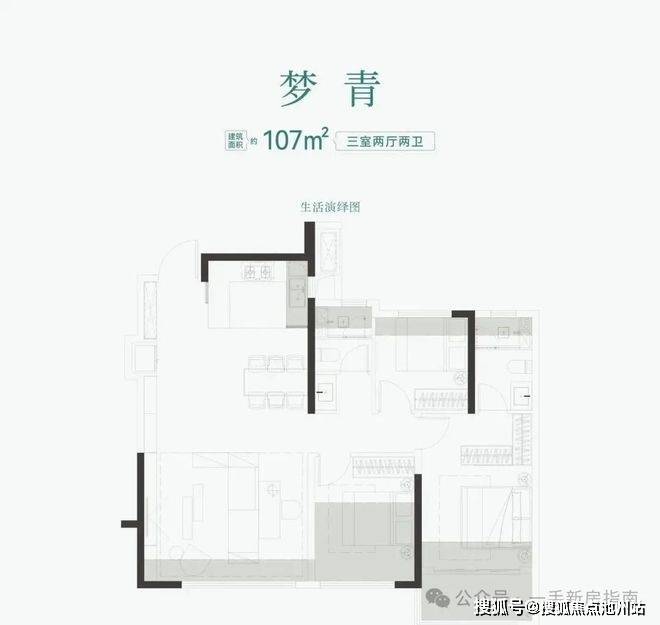 建面约107㎡三房,相当于三代住宅建面约120㎡以上户型,三房配置绰绰有余。是光谷在售入门级的四代小户型,相对较低的入手门槛,深受光谷年轻首置家庭追捧。