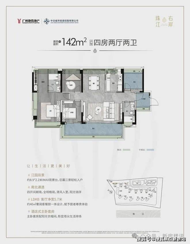 与江60米,户户朝南望江:距离珠江仅有60米的距离,在售项目中几乎是最靠近珠江的。这个亲江距离,连珠江新城单价25万的凯旋新世界广粤尊府及单价30万的汇悦台、琶洲超15万的保利天悦都无法拥有。户户朝南望江,更是罕有。