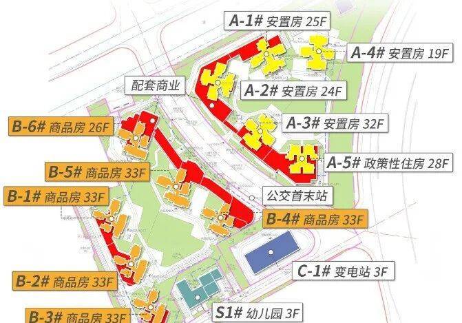 小区配套:整个项目,以中间规划路为界,左侧是6栋商品房,右侧是5栋安置房(含1栋公租房),配建有1所9班幼儿园、托儿所和公交首末站,1.8万㎡围合式大园林及1.5万㎡红线内外绿化。