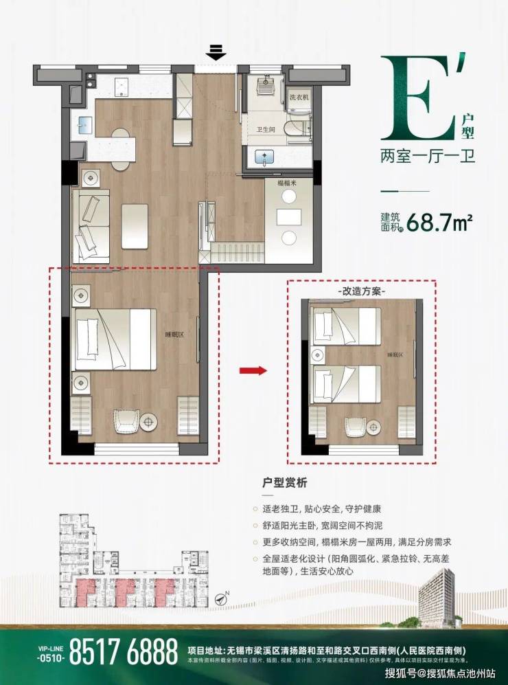 E'户型(两室一厅一卫):建筑面积约68.7㎡