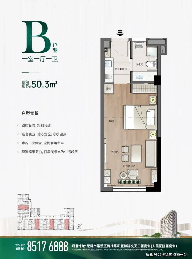 B户型(一室一厅一卫):建筑面积约50.3㎡