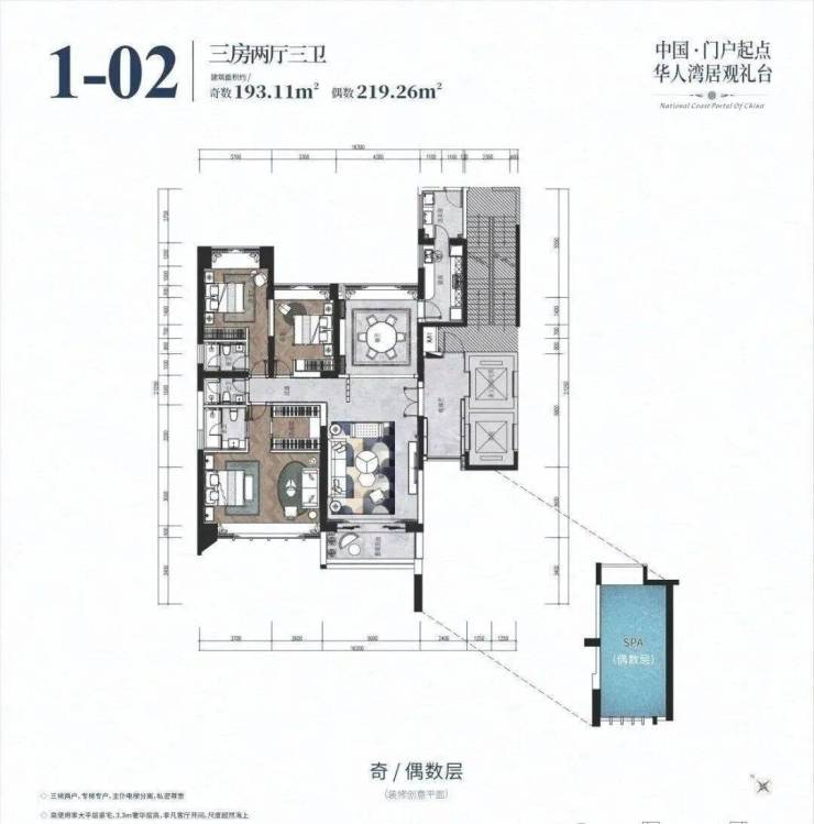 高使用率大平层豪宅,3.3米奢华层高,非凡客厅开间,尺度超然海上