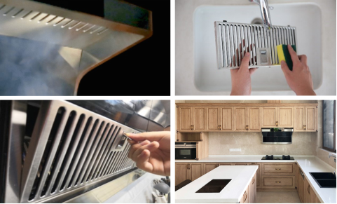最后来验证一下清洗油网的便捷性,此款产品的油网设计是两段式的,并且没有用螺丝固定,拉起中间的拨片向上一提立刻就拆了下来,除了可以放入普通的双槽洗碗池内进行清洗。胖编将油网放到洗碗机里试了试,居然也能放进去。由此看的出设计师的匠心所在。