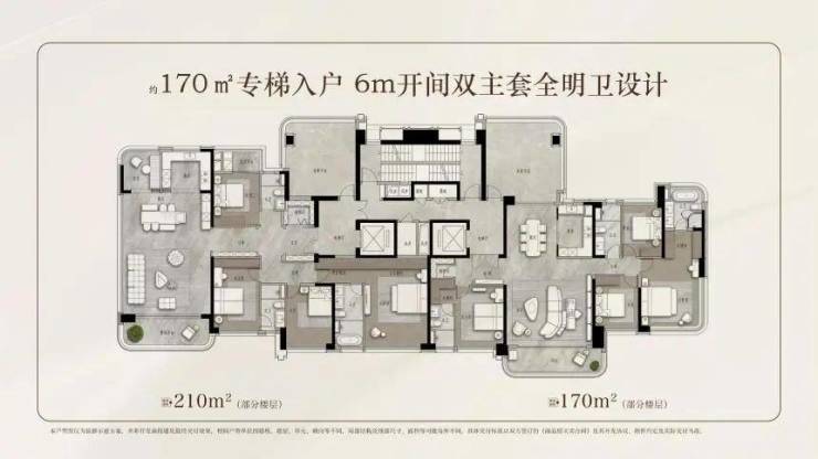 目前项目在售的户型涵盖 120㎡、140㎡、170㎡和 210㎡的四房单位,均为带装修交付。