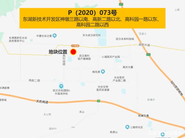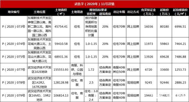 现场挂牌出让,位于武汉经济技术开发区142R2、167R2地块,占地约192.19亩,商住用途,计容建面约32.03万㎡(这里按容积率2.5计算),P(2020)078号地块起始总价92446万元(折合约9.24亿元),起始楼板价2886元/㎡。
